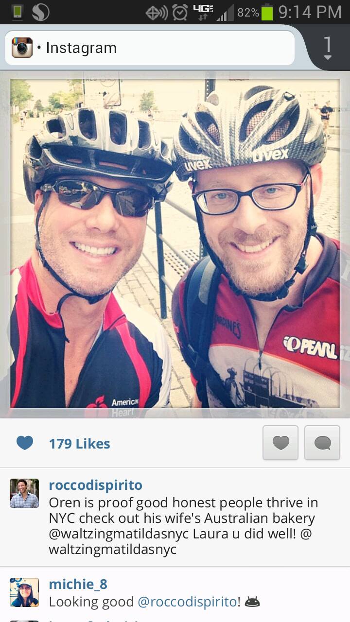 Sometimes New Yorkers forget what good old-fashioned hospitality is all about. But OnSIP Software Engineer Oren Forer had no trouble summoning this side of him on Friday when an unidentified cyclist dropped his phone. “I picked it up and chased him down about a half mile or so,” Oren said. Little did he know that the cyclist was Celebrity Chef Rocco Dispirito.